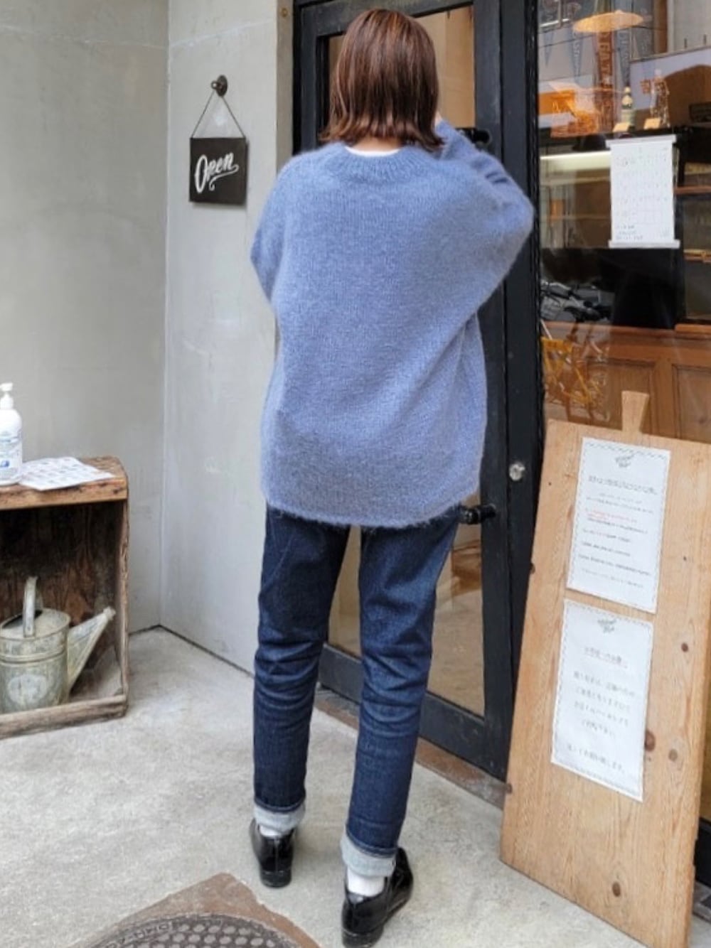 ニット最後の日。 ブルーコーデ。 このデニム、ほんと形が素晴らしい。