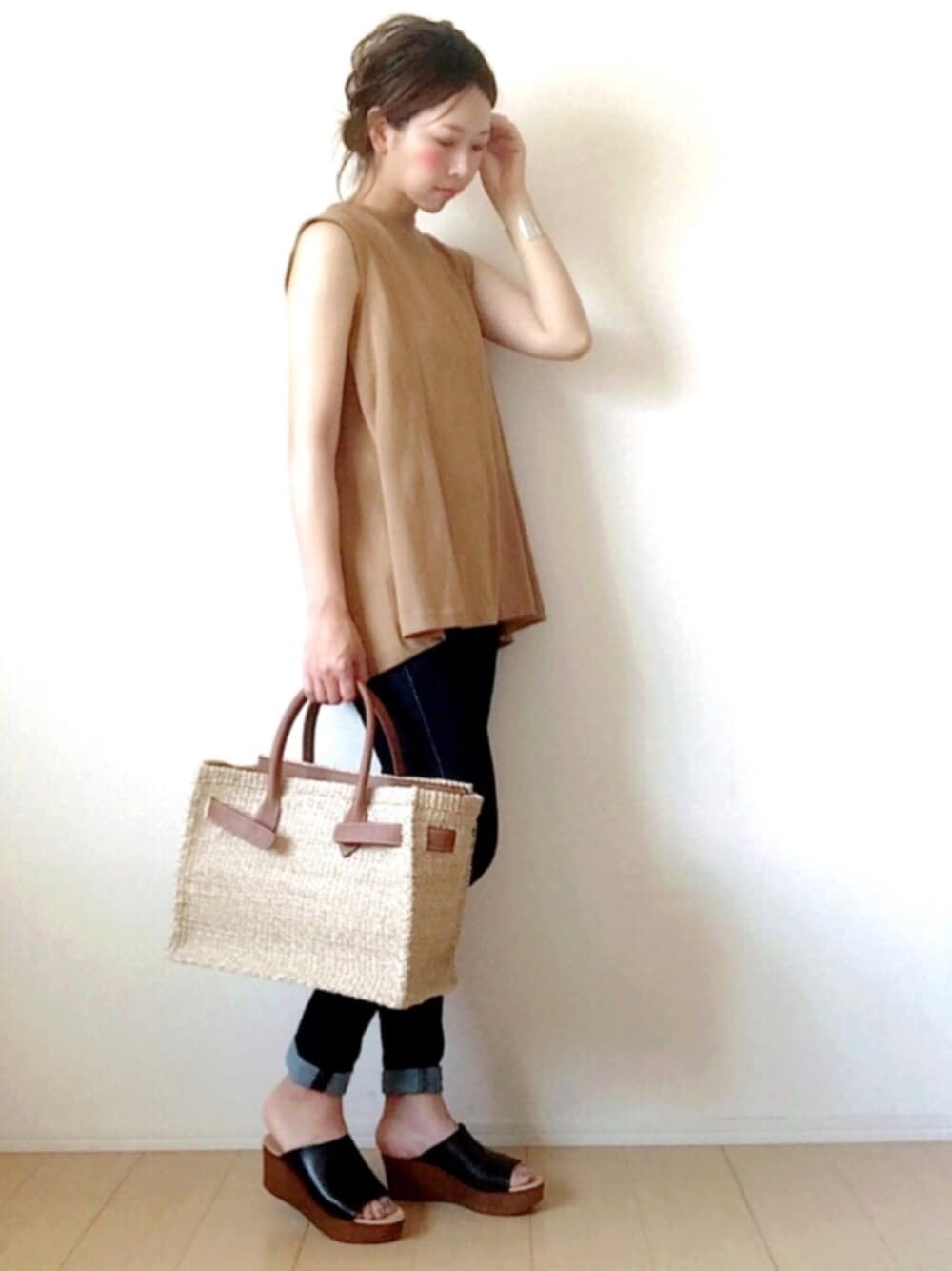 夏全開な格好になりました😆🍉🎐 キャメルとネイビーはやっぱり好きな組み合わせ✨ アダムエロペさんのブレスレットをコーデのアクセントに‥😌💫