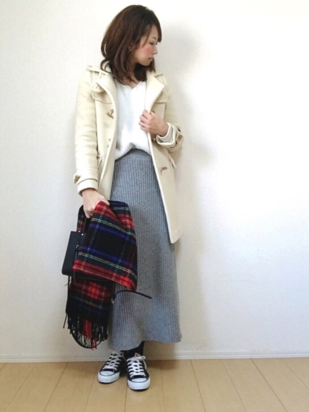 hakuのダッフルコート「BYBC ∵パイルメルトンミドルダッフル/オフホワイト ◆」を使ったコーディネート