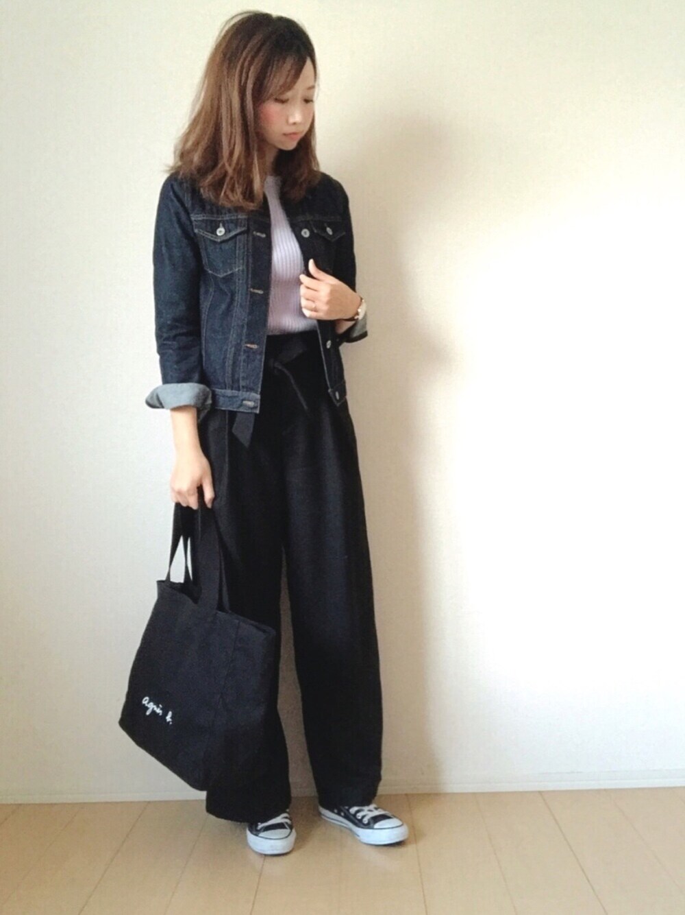 カジュアルコーデ😃🎶 SHIPSのリブニットはピンクと二色買いしてしまったほど色がとってもきれいでお気に入り💕💕