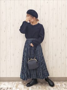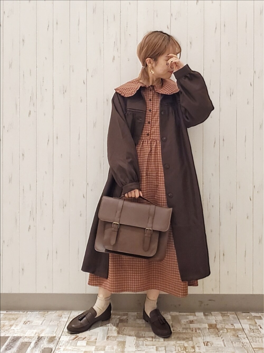 rio✿のワンピース「ビッグ襟チェックワンピース」を使ったコーディネート