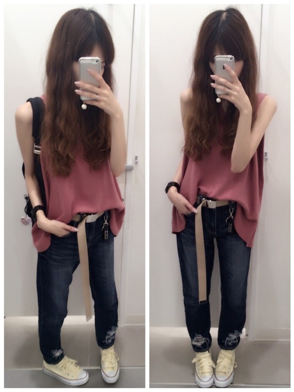 ピンクのノースリで 夏気分ーっ٩(ˊᗜˋ*)و 今日は具合悪くなったけ. 急遽外食中止にしてもらい おうちで料理したげた👰🔪