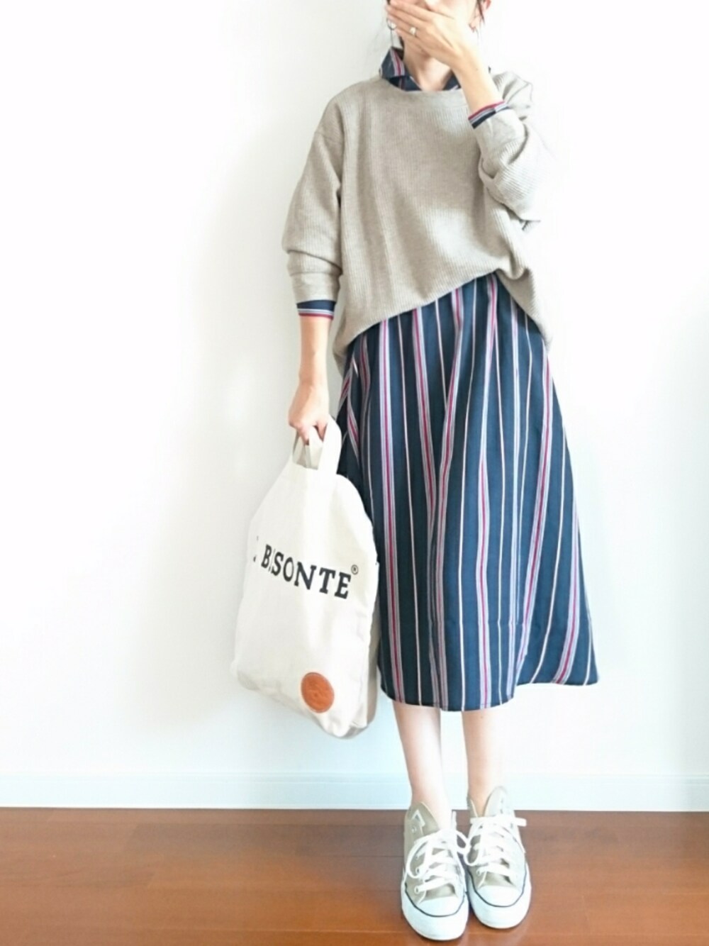 ワッフルT❌ストライプワンピ。 instagram:ue_004 あしたもHappy♬な1日になりますよーに。 \(´▽`♡)/゚.*・。゚♬*゜ #PR