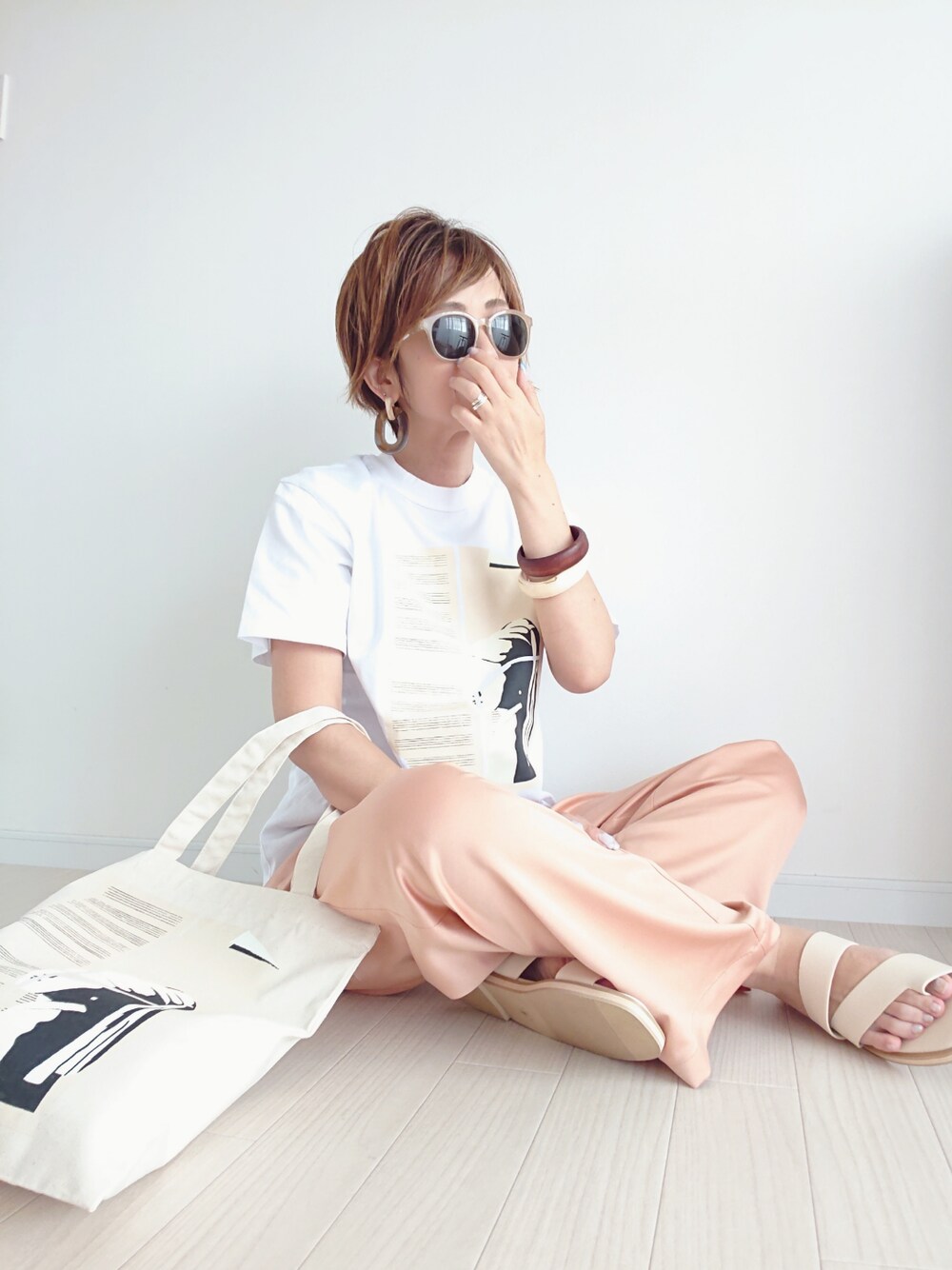 𝕪𝕦𝕚のトートバッグ「[ L&HARMONY/エルアンドハーモニー ] MOTAS.×L&HARMONY 真珠の耳飾りの少女 キャンバストートバック」を使ったコーディネート