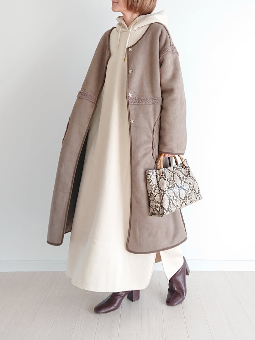 𓏲.¸𓈒 𓂂𓏸𓐍❅.゚* ⏩️Birthday room 【ボアリバーシブルパイピングコート】 ムートンとボアのリバーシブルの2wayコート。 今回はムートン側にして着てみたよ♪ ムートン側は切替のところがアウトキリングになってて ボア側はパイピングでデザインされてて今年らしい一着♡ リバーシブルなのに着ぶくれることもないし 軽いのにすごくあったかくて可愛くて文句なし!! 今日ZOZOクーポン使えるから☑︎checkしてみて♬ ⏩️coen 【CVC裏起毛サイドスリットフーディーマキシワンピース】 裏起毛がめっちゃ気持ちいいし、あったかすぎてやめられない♡← ロングコートと合わせてもサイドスリットで足捌きもいいし ポケットがあるのもうれしい気づかい(*Ü*)*.¸¸♡ カラーは5色でsizeもSからLまであるよ!! sizeは総丈違いになってて自分の好きな丈感や 身長にあったsizeが選べていいよ♬ わたしはSサイズのナチュラルにしたよ𓈒𓏸𓐍 instagram:ue_004 今日もHappy♬な1日になりますよーにዎ˚* ੈ꙳ #pr