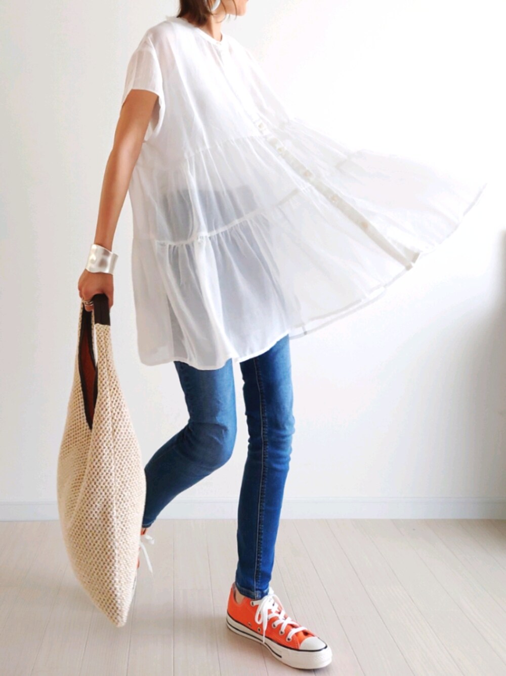𝕪𝕦𝕚のデニムパンツ「オーガニックコットン混デニムスーパーストレッチスキニー アンクル丈 婦人22」を使ったコーディネート