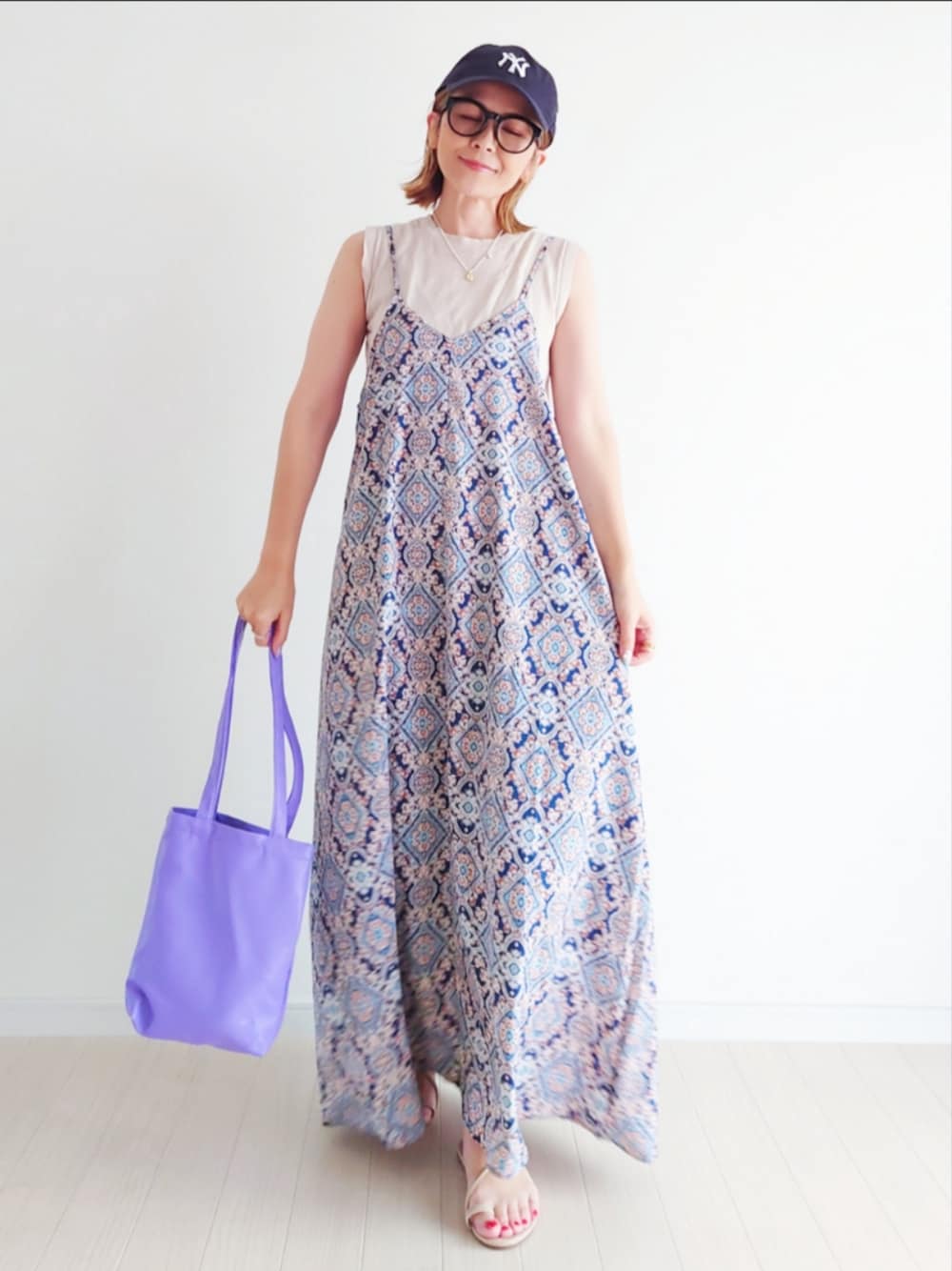 𝕪𝕦𝕚のワンピース「マルチパターンバックリボンキャミワンピース」を使ったコーディネート