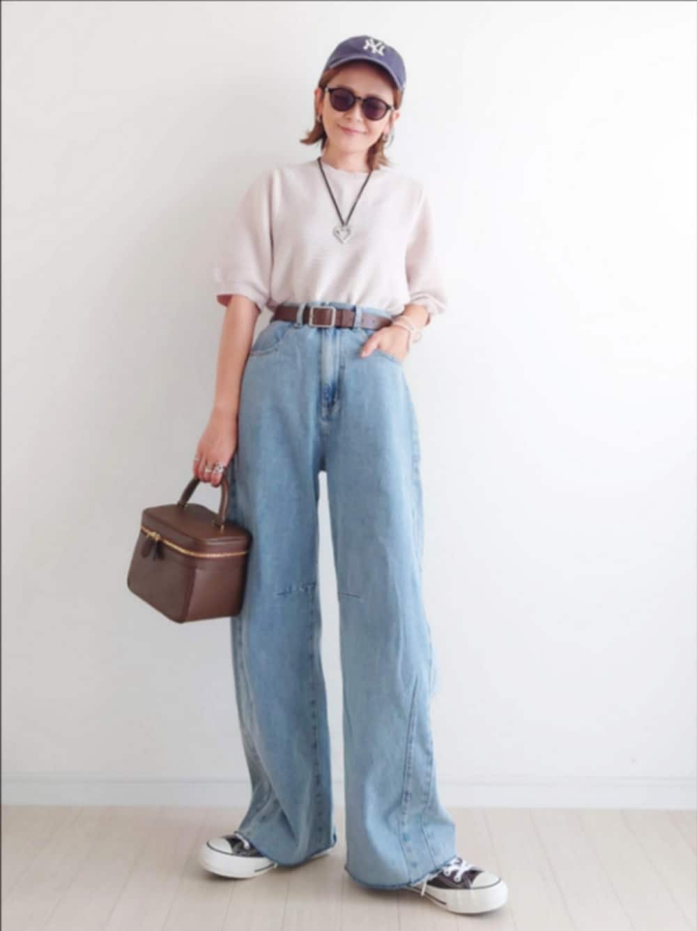 𝕪𝕦𝕚のニット/セーター「◆《6color/S-LLsize》ガーターボリュームスリーブニット【洗濯機洗い可/UVケア】」を使ったコーディネート