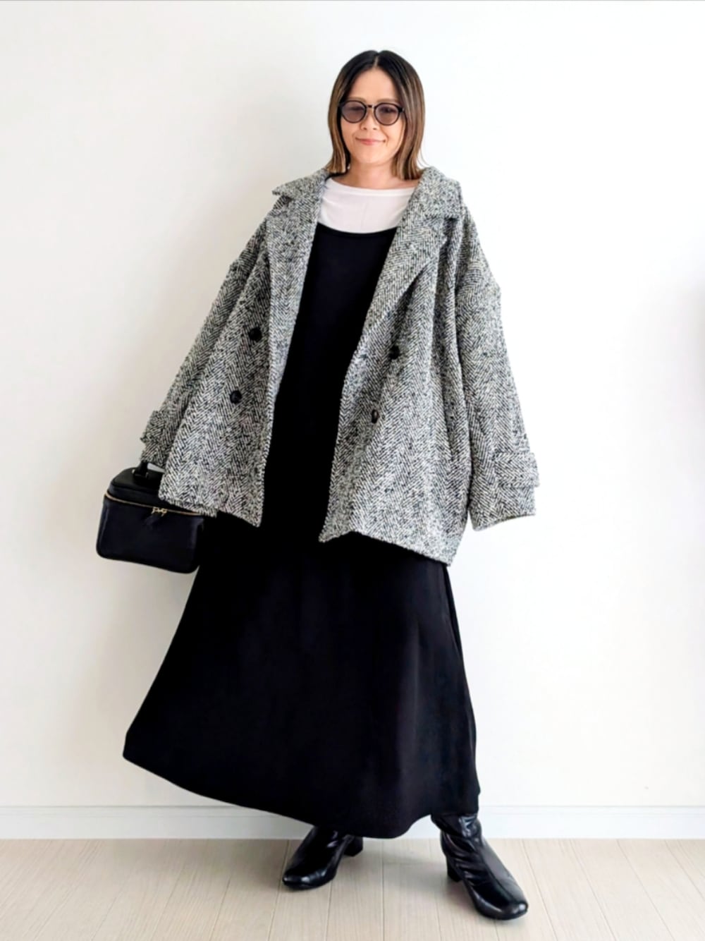 𝕪𝕦𝕚のピーコート「【 notch.by yui 】Re arrival 2025AW ヘリンボーンPコート」を使ったコーディネート