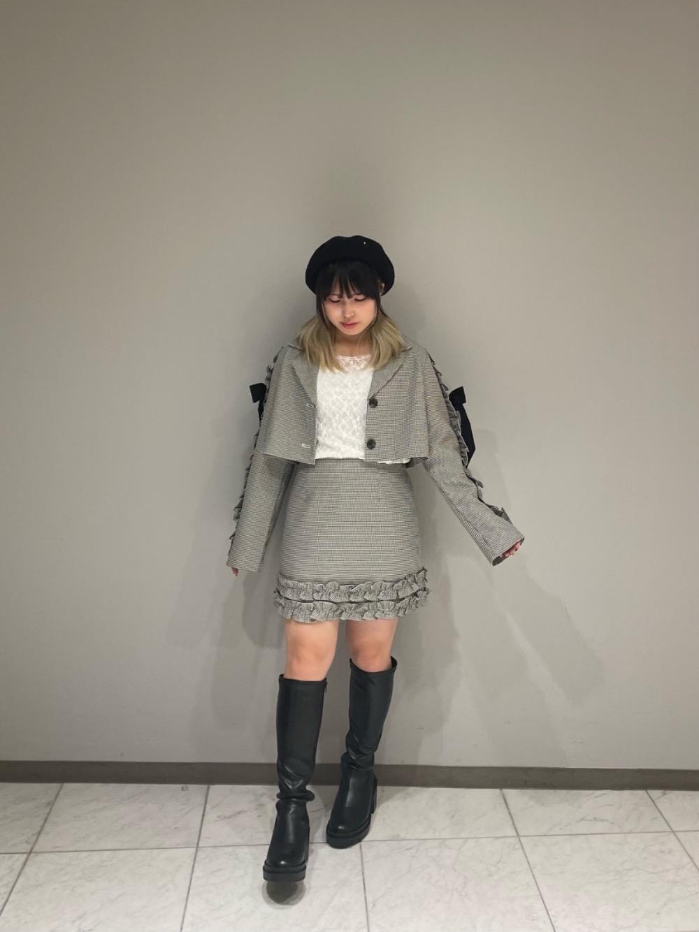 セットアップのジャケットとスカートは別で着ても◎ リボンは自由に取り外し可能になってます! ブーツは低身長でも歩きやすいデザインになっています!スタイル爆盛れ間違いなし✨️