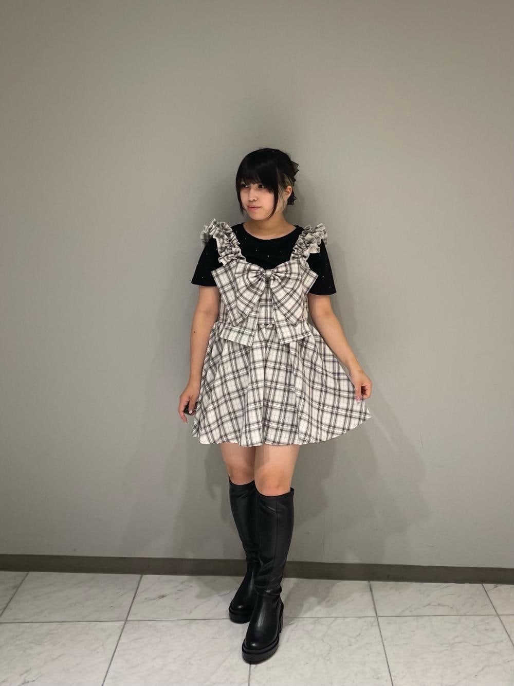 ビスチェの大きなリボンが顔周りを華やかにしてくれます!Tシャツは1枚でもサラッと着やすく、シンプルなのでビスチェとの相性バツグンです😊 ショーパンと合わせてミニワンピ風に!ロングブーツで脚長効果も🌟