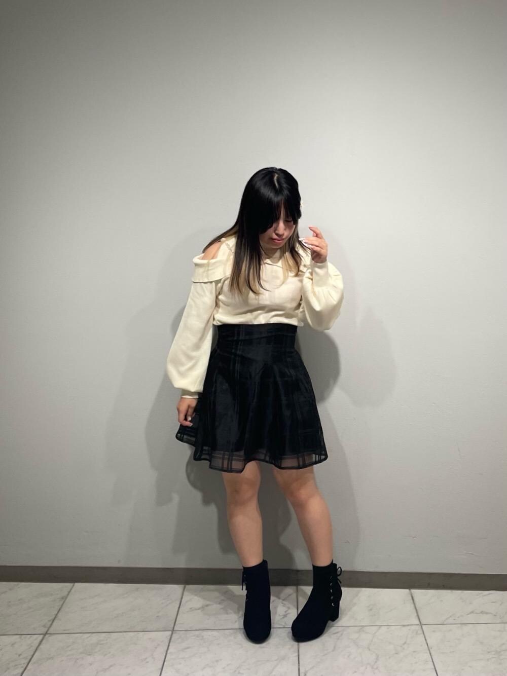 ナチュラルに肌見せが叶う大人かわいいトップス🌟二の腕をカバーしてくれる形になっています! スカートはウエストをリボンで調節できるのでスタイルアップ間違いなし✨️丈も短すぎず履きやすいです!