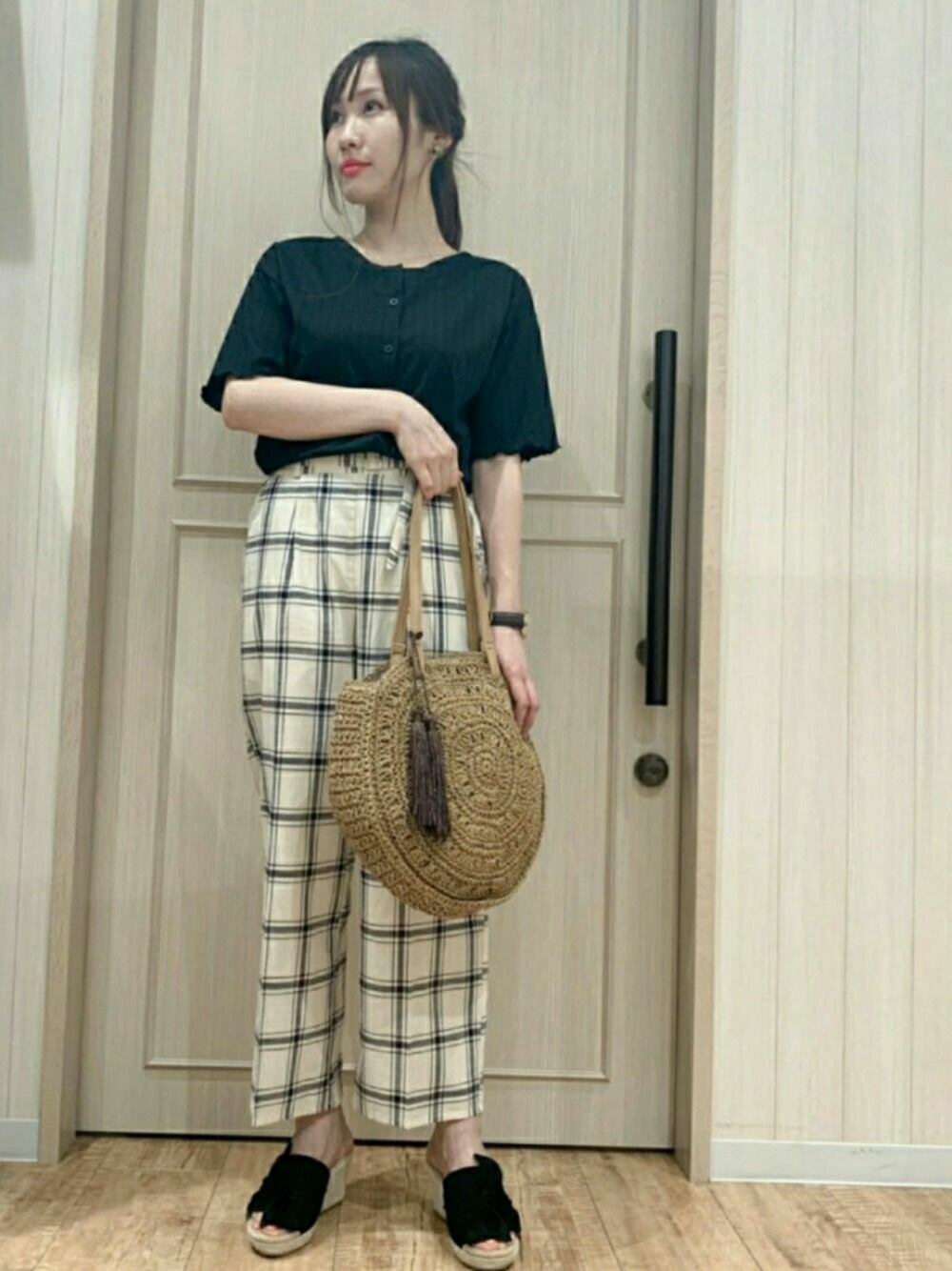 いつもご覧頂きありがとうございます😌 サークルトートバック👜 タッセルチャームがアクセントに。 一気に季節感がでますね🌻 季節感を取り入れるならぜひ小物から👠👒👜 小物ひとつで印象が変わります🌟 パンツはリネン素材です😌 ラインがすっきりしてて存在感抜群✨