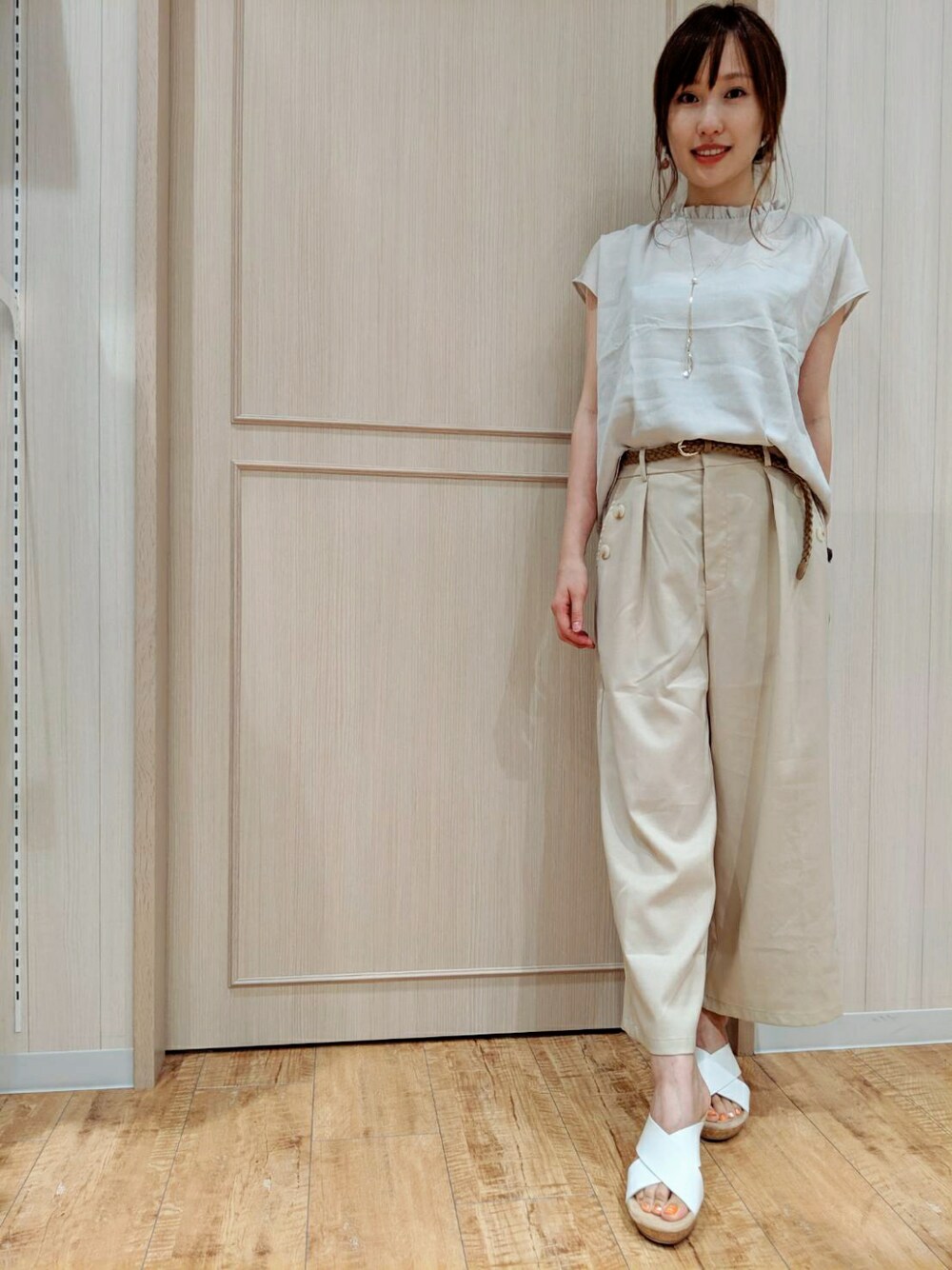 いつもご覧頂きありがとうございます🙇❤️ ワントーンコーデはライトベージュ✨ トップスのスタンドネックはフリル状のデザイン☺️ 麻っぽい生地感が気持ちいい😊 こちらは前後どちらも着られる2wayタイプ👕 フレンチスリーブなので二の腕カバーしてくれて ノースリーブが苦手な方にもおすすめです💞 パンツは前タックが入っているので 広がりもなくとてもキレイなラインをだしてくれます☺️ 夏のベルトにはメッシュベルトがマストアイテムですね✨ ベルトがポイントになりキレイめに決まります❤️ トレンドのワントーンコーデ😉 他のお色も気になるのでまたワントーンコーデ 投稿しますね🙆💞