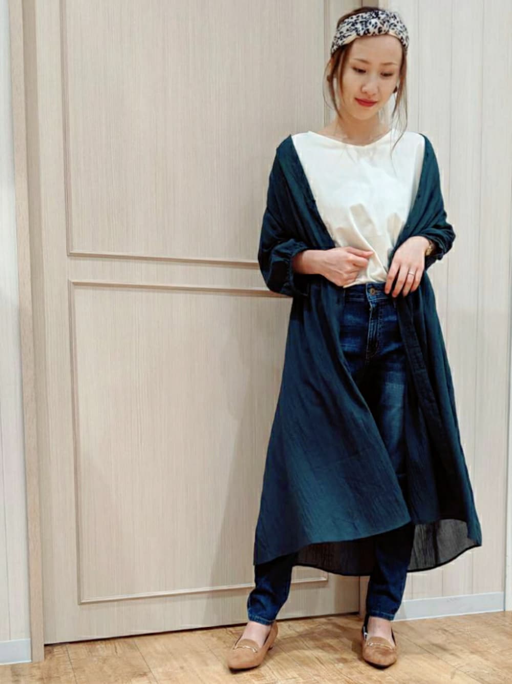 いつもご覧頂きありがとうございます🙇❤️ 本日は大人カジュアルに⭐ ダークグリーンのシフォンカーディガンは 重めのお色ですが素材の柔らかさが見た目でも 着心地でも実感できて秋の先取りアイテムには ぴったりの一枚です🍁🍁 こちらの黒を前の投稿でワンピースとして 着用していますのでよろしければご覧下さいませ🐻🍎 ストレッチスキニーデニム👖 色落ちを自然と演出しておろしたてのような なじみ感をだしてくれますよ❤️❤️ ヘアバンドをして視線アップ🍁 レオパードをポイントで取り入れて カジュアル×ガーリーに🤩