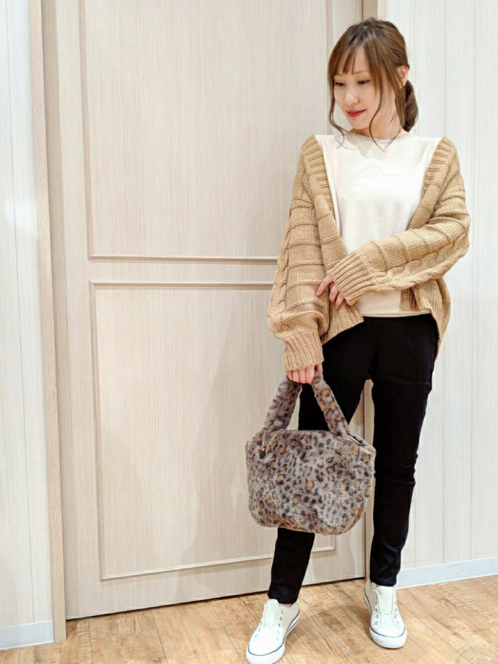 いつもご覧頂きありがとうございます🙇❤️ インナーのニットコンパクトドルマン❤️ ボートネックになっているので 顔回りをすっきり見せてくれます☺️ ヒップにかかる丈感も女性らしいですよね✨ 着痩せ効果のある1枚です🙆🌟 こちらにはシューらくパンツを合わせて 羽織はハイゲージニットのカーディガン😘 編み目が粗くてしっかりと編み目模様が見えて とっても可愛かったです☺️💞 ゆるっとしたシルエットにトレンドのベージュ🦙 可愛らしさを印象づけてくれる羽織です🥰 フェイクファートートバッグは2way❣️ ふわふわで触りごこちがたまらなく💮 取り出し口はマグネット式ボタン❤️ お値段もプチプラの1998円+税・・・😲🎈🎈 内側には3ポケットあるので機能性も💮ですね🐻💕