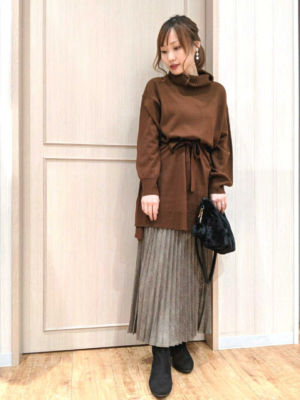 いつもご覧頂きありがとうございます🙇❤️ レイヤードスタイルにぴったりのワンピースは ウエストリボンでスタイルアップ🌟 薄手のニット素材でごわつきなくさらっとした印象に🐩 タートルネックが首もとを包み込み 小顔効果もでて嬉しいですよね💞 スカートは起毛素材でシーズンムードもででいます😌 大人な上品スタイルに🤗