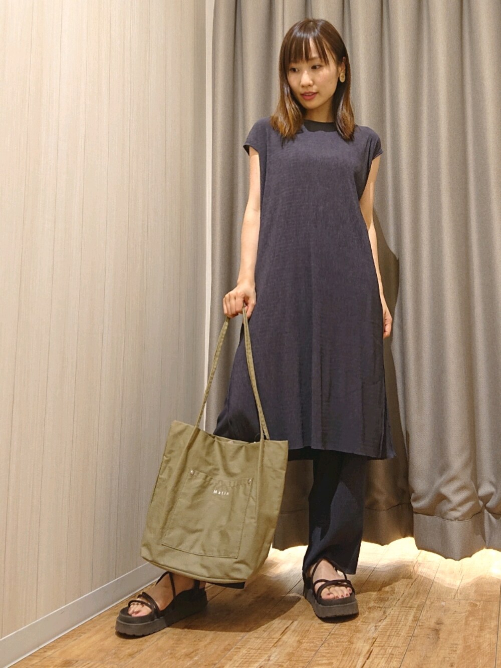 himi(SHOO・LA・RUE)のトートバッグ「◆つまみハンドル帆布トート」を使ったコーディネート