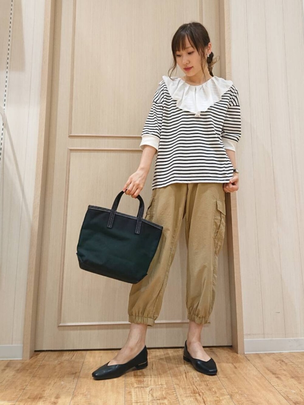 himi(SHOO・LA・RUE)のTシャツ/カットソー「◆【S-L】前後2WAYフリルカラープルオーバー」を使ったコーディネート