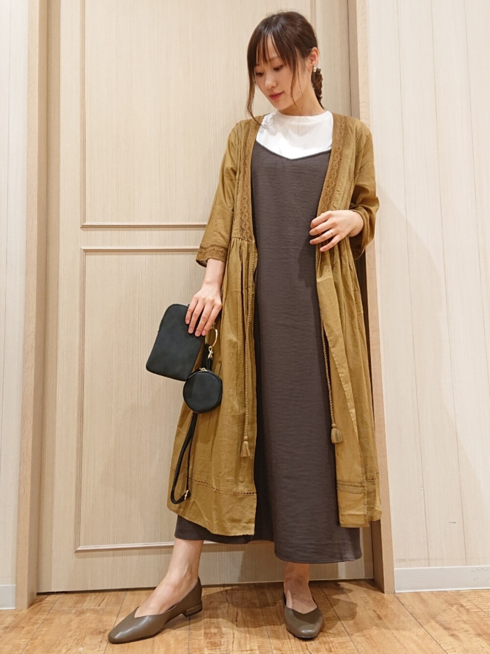 himi(SHOO・LA・RUE)のワンピース「◆【2点セット】くるみ釦キャミワンピース×Tシャツ」を使ったコーディネート