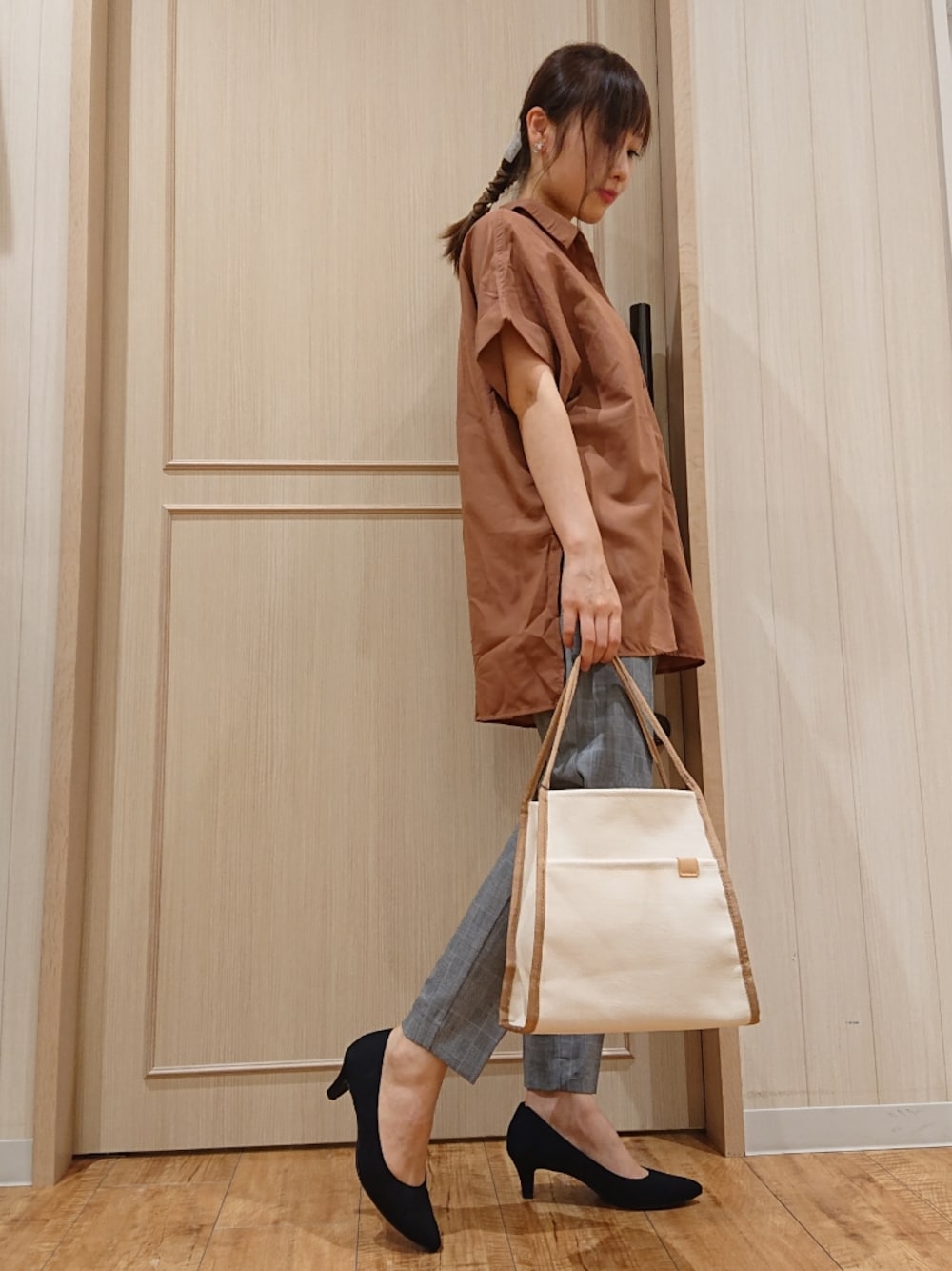 himi(SHOO・LA・RUE)のトートバッグ「◆グログランパイピングトート」を使ったコーディネート