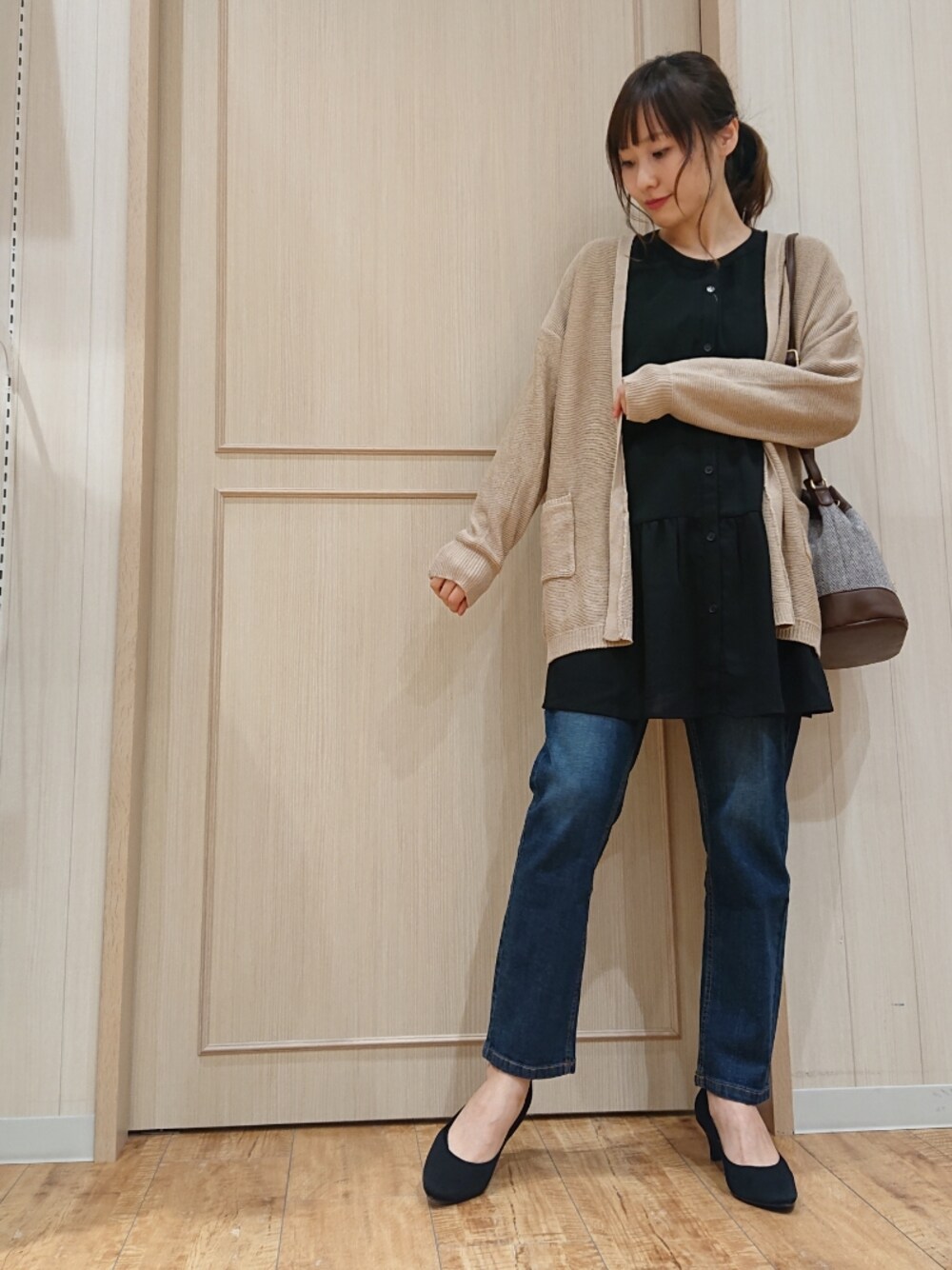 himi(SHOO・LA・RUE)のデニムパンツ「◆【S-LL】デニムゆるテーパードパンツ」を使ったコーディネート