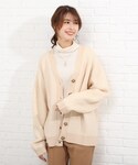 himi(SHOO・LA・RUE)のニット/セーター「◆【M-3L】ちくちくしにくい袖ボタンつきリブニット」を使ったコーディネート