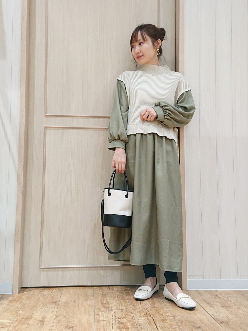 himi(SHOO・LA・RUE)のワンピース「◆ニットベストドッキングワンピース」を使ったコーディネート