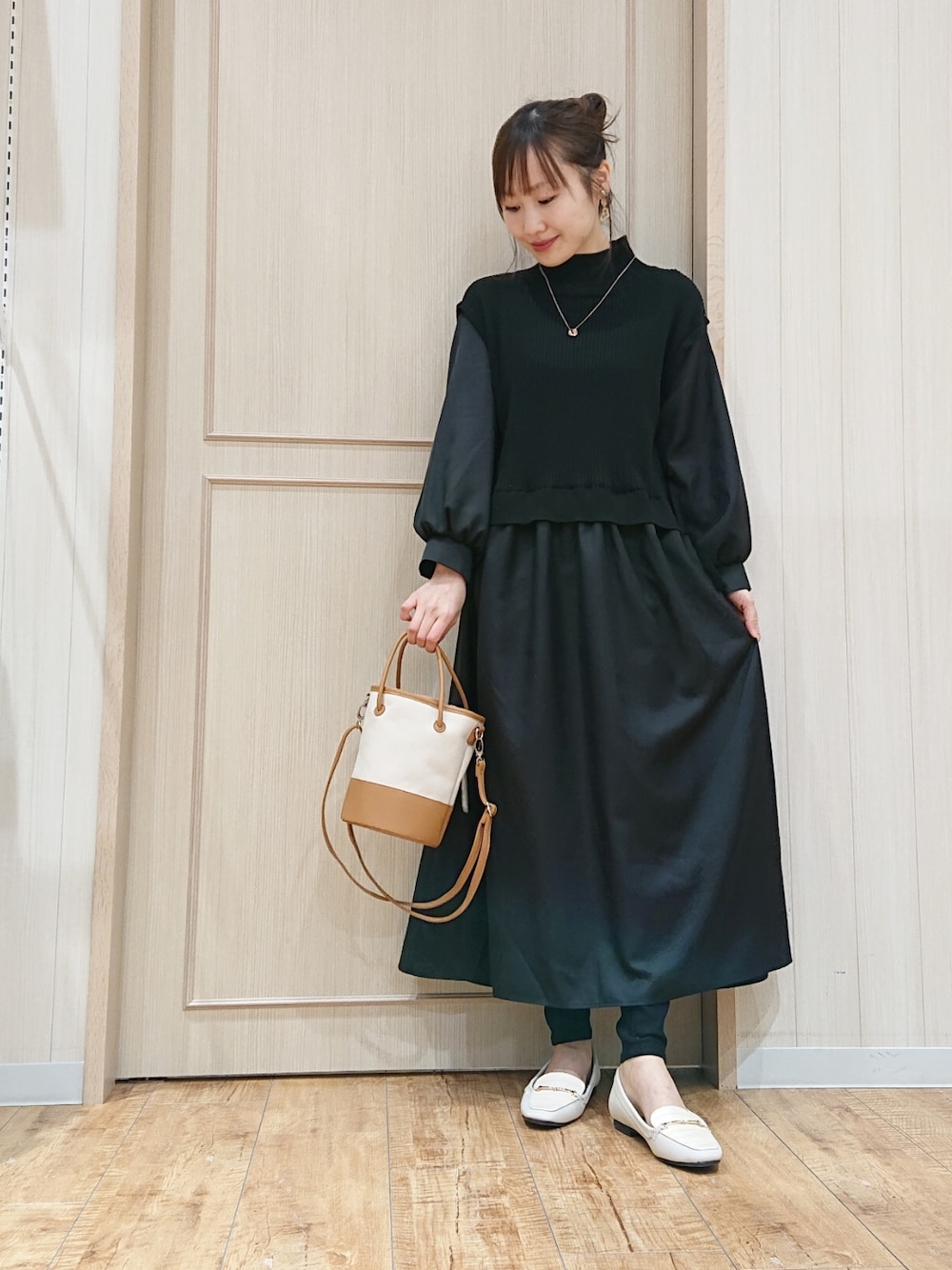 himi(SHOO・LA・RUE)のワンピース「◆ニットベストドッキングワンピース」を使ったコーディネート