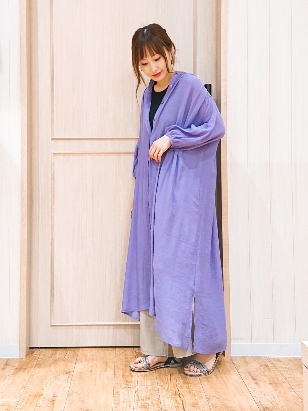 himi(SHOO・LA・RUE)のワンピース「◆スラブ前開きビッグワンピース」を使ったコーディネート