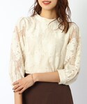 himi(SHOO・LA・RUE)のTシャツ/カットソー「◆総レ-スパフ袖プルオーバー」を使ったコーディネート