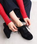 紐が2種類ついているバレエコアスニーカー🩰👟 休日のラフな雰囲気にはベーシックな平紐で✨ いつものサイズ:23.5cm 着用サイズ:23.5cm ジャストサイズでピッタリフィット!軽くて、履きやすいゴムのはき口が嬉しい☺️とにかく楽ちんで軽いので休日の日にもたくさん履いてる一足です✨