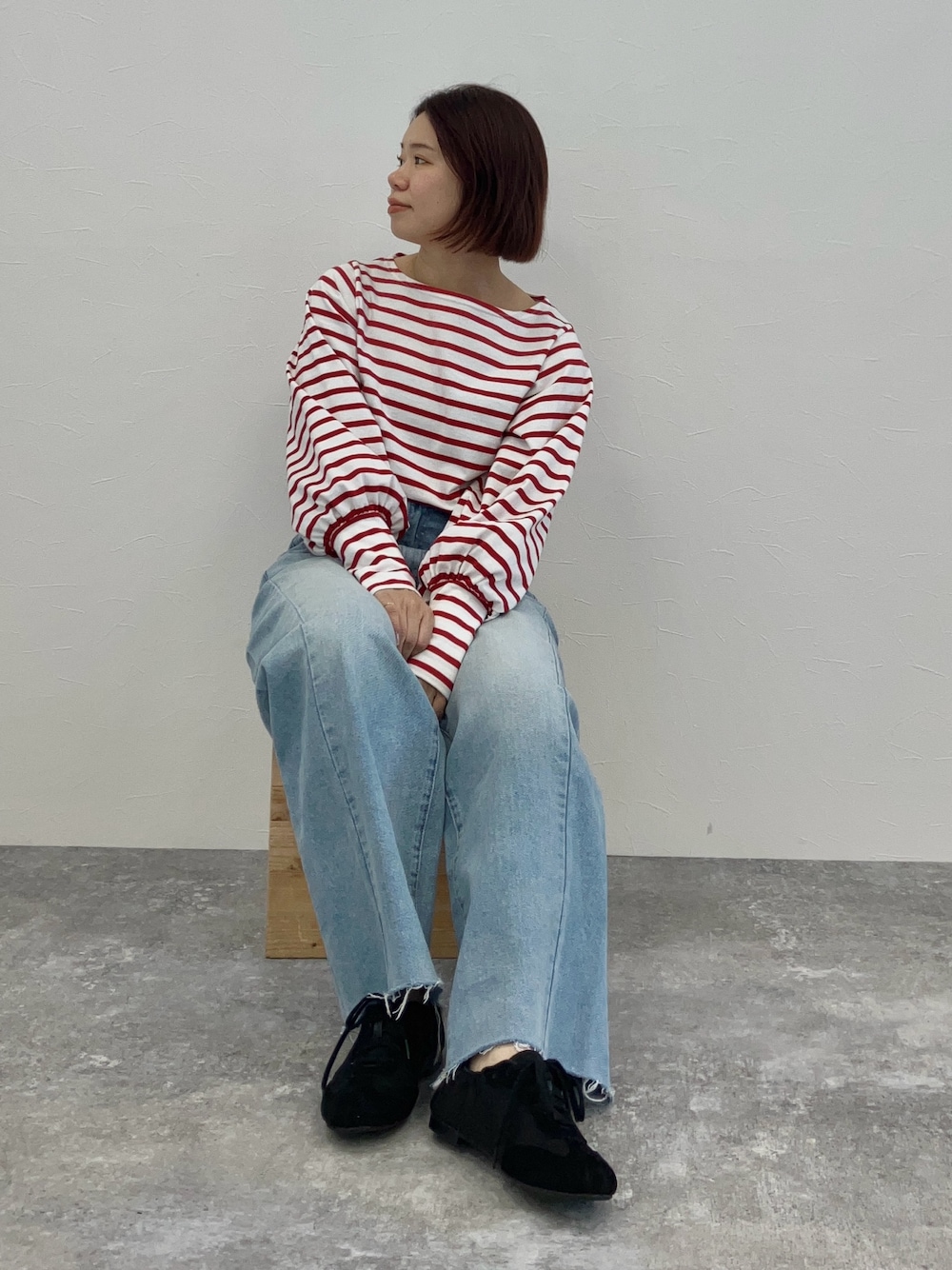卑弥呼 本社スタッフE(卑弥呼 Online Shop)のTシャツ/カットソー「ボーダーパフスリーブ_長袖」を使ったコーディネート