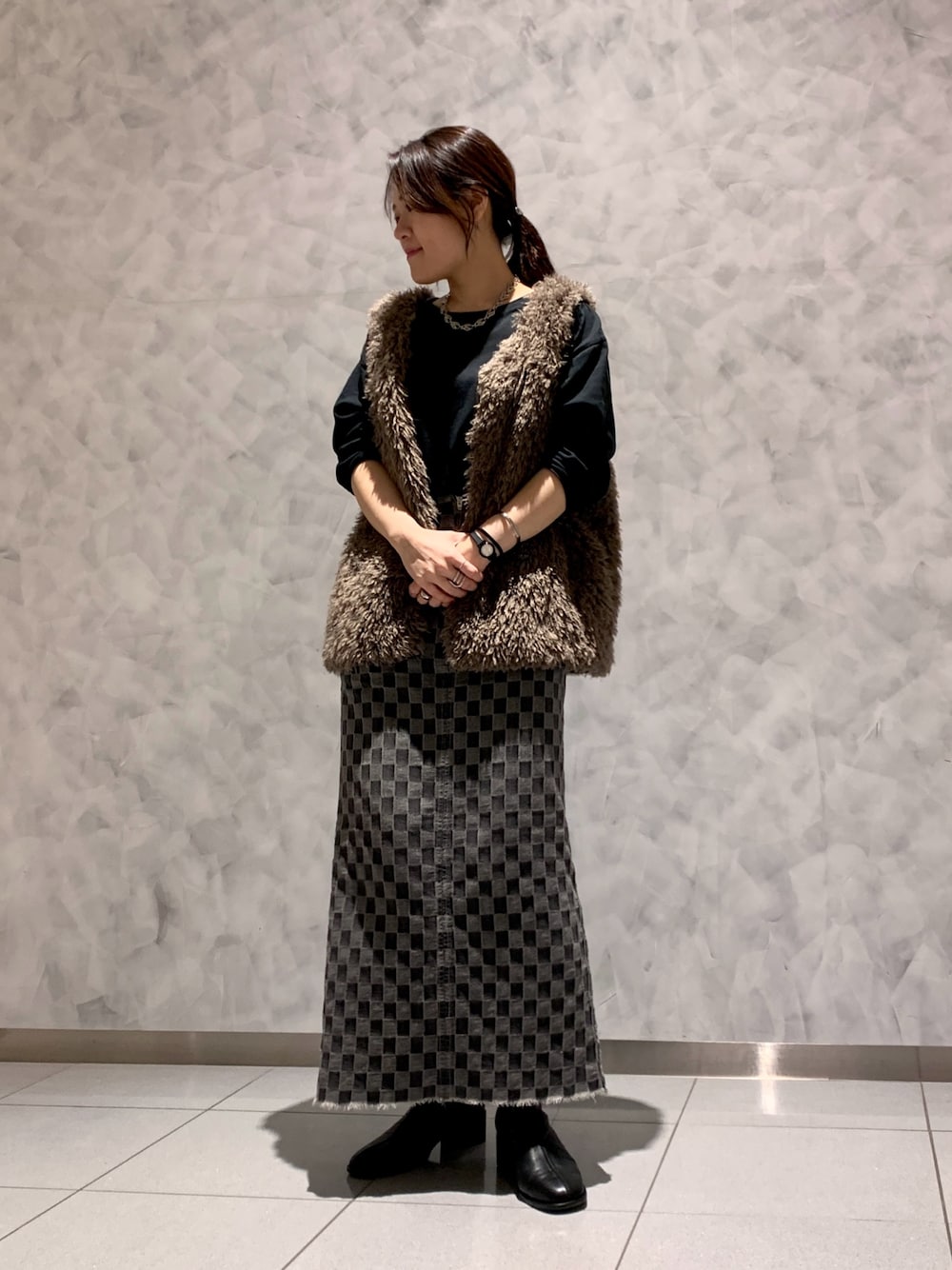 ご覧いただきありがとうございます😊 人気のストレッチブーツを合わせました! 羊革でとても柔らかく、4センチのヒールを感じさせない安定感があります! パンツに合わせてもかわいいです◎ 有楽町マルイ店スタッフ chiiiiii