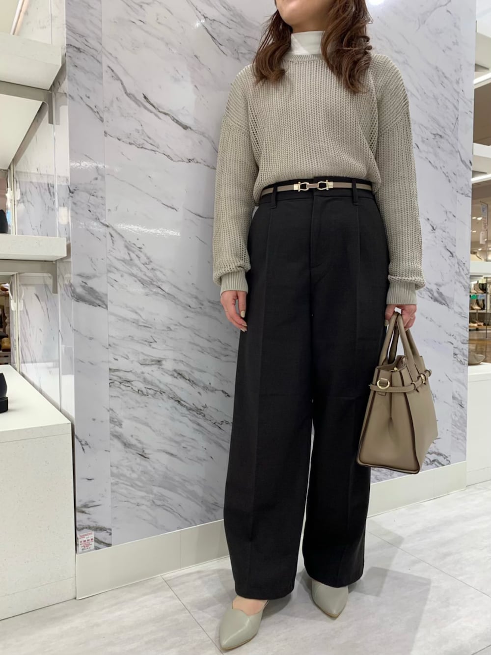 ご覧いただきありがとうございます😊 軽やかさのあるメッシュニットに、トーンを合わせたパンプスで春先コーデに。 3.5cmヒールで歩きやすく、フラワーカットが程よい上品さと遊び心をプラスしてくれます! いいね、お気に入り登録ありがとうございます✨