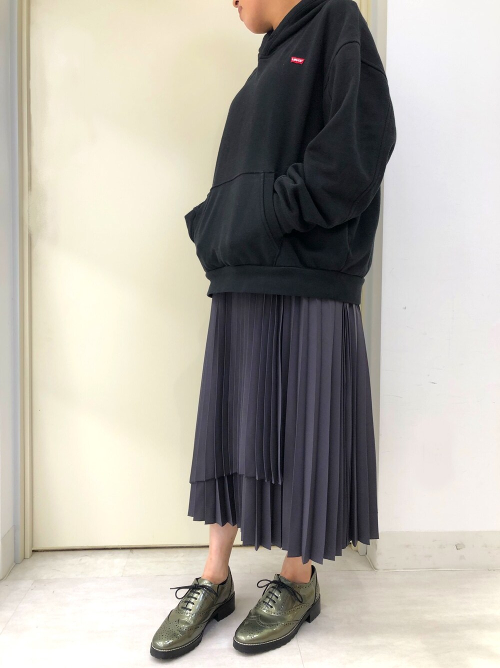 HIMIKO 北千住マルイ店(卑弥呼 Online Shop)のパーカー「UNBASIC フーディー MINERAL BLACK」を使ったコーディネート