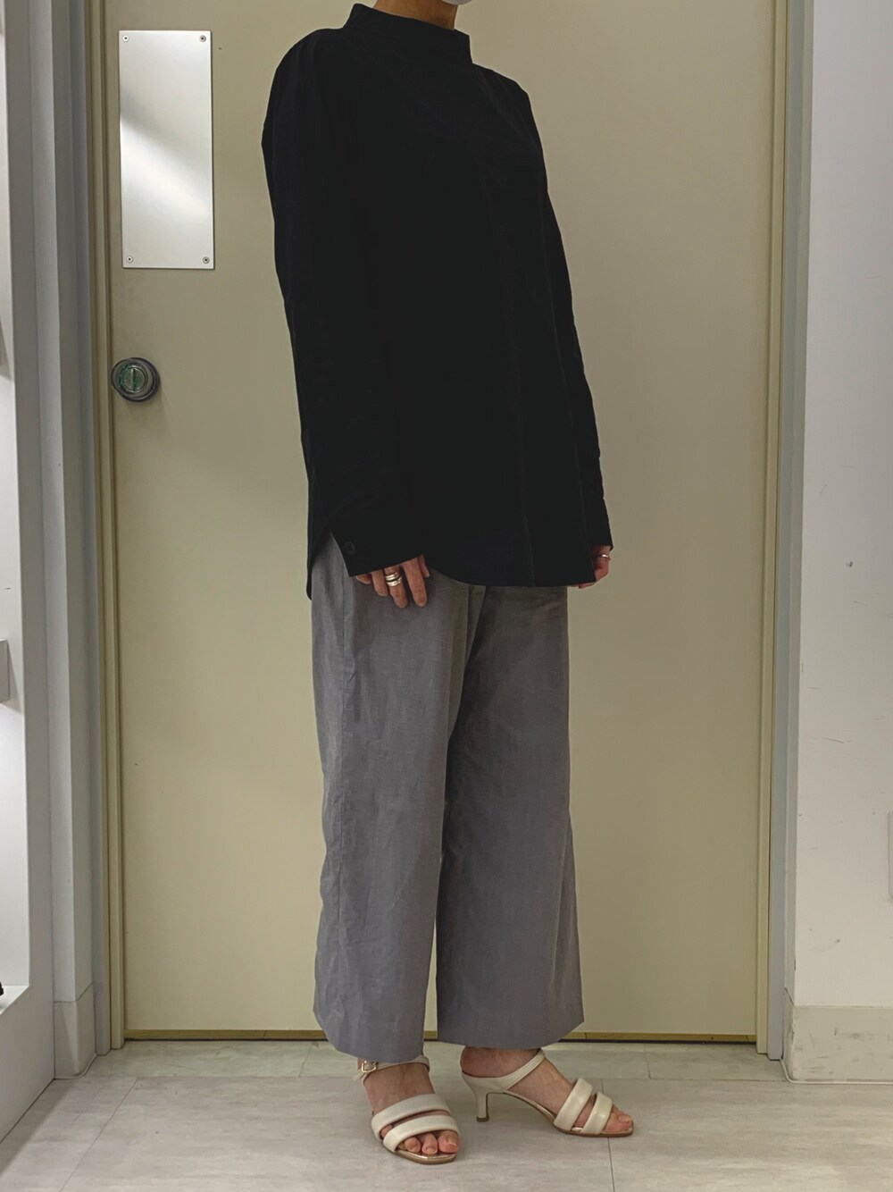 キチンと感のあるモノトーンコーデを ホワイトサンダルで軽やかに。 足元を明るいカラーにすれば 夏のブラックコーデも重くならずに楽しめます。