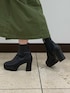 ご覧いただきありがとうございます! 高めのヒールブーツをご紹介いたします。 ヒールは8cmありますが、しっかりとした太ヒールにボリューミーなストームで安定感抜群👍 また、ヒールとストーム部分にはペイズリー型の型押しでシンプルな中にも他と差のつく1足です✨ コーディネートしやすくスタイルアップも出来るブーツでおすすめです!