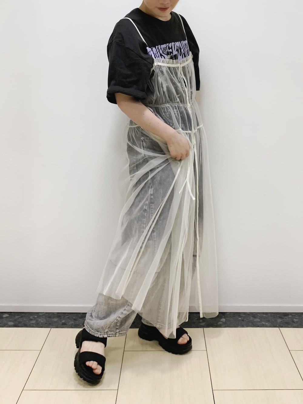グラフィックTにシアー素材を重ねるのが最近のマイブーム。 Tシャツ✖️デニムの定番合わせにガーリーなキャミワンピをレイヤードして、足元はマット感がくっきりしてかわいいスポーツサンダルでまとめました。 ぷっくりデザインにマット素材が相性抜群でどんなコーデにも使えそう😎 ---------- HIMIKO 厚底パデットサンダル 651201
