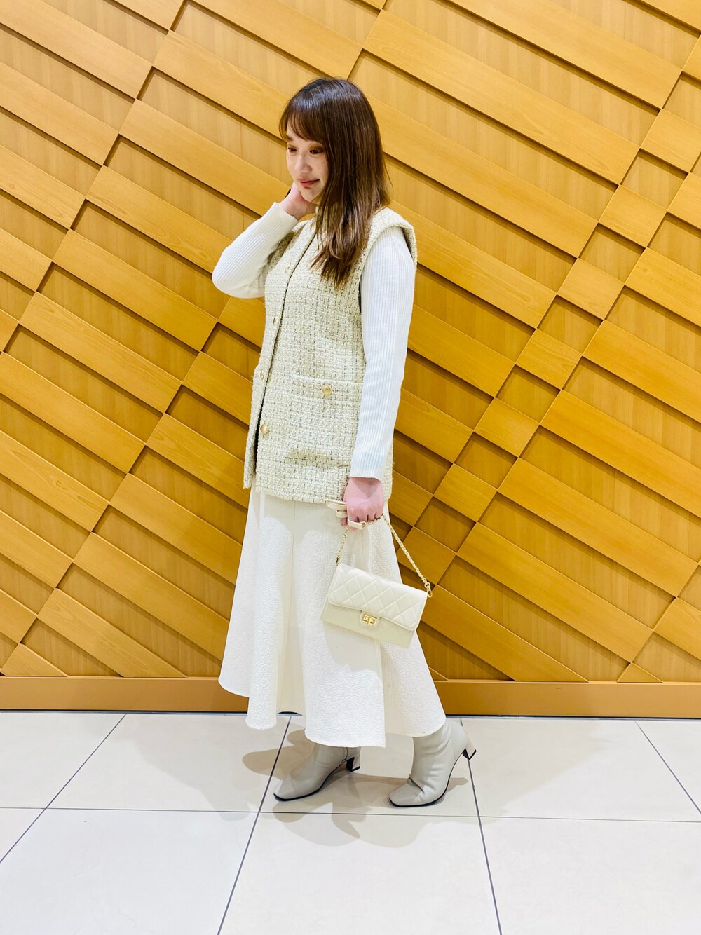 ご覧頂きありがとうございます🐻❄️🌷 HIMIKOのブーツを使用して、 ホリデーシーズンに映えるホワイトコーデに挑戦しました🎄🫧 ペイズリー柄の変形ヒールが特徴で後ろ姿もバッチリ✨ かかとのクッションがしっかりしているので長時間の歩行も苦になりません🫶 シルエットもキレイなのでぜひ店頭でお試し下さいませ❄️ いいね👍 お気に入り登録🧡ありがとうございます😊
