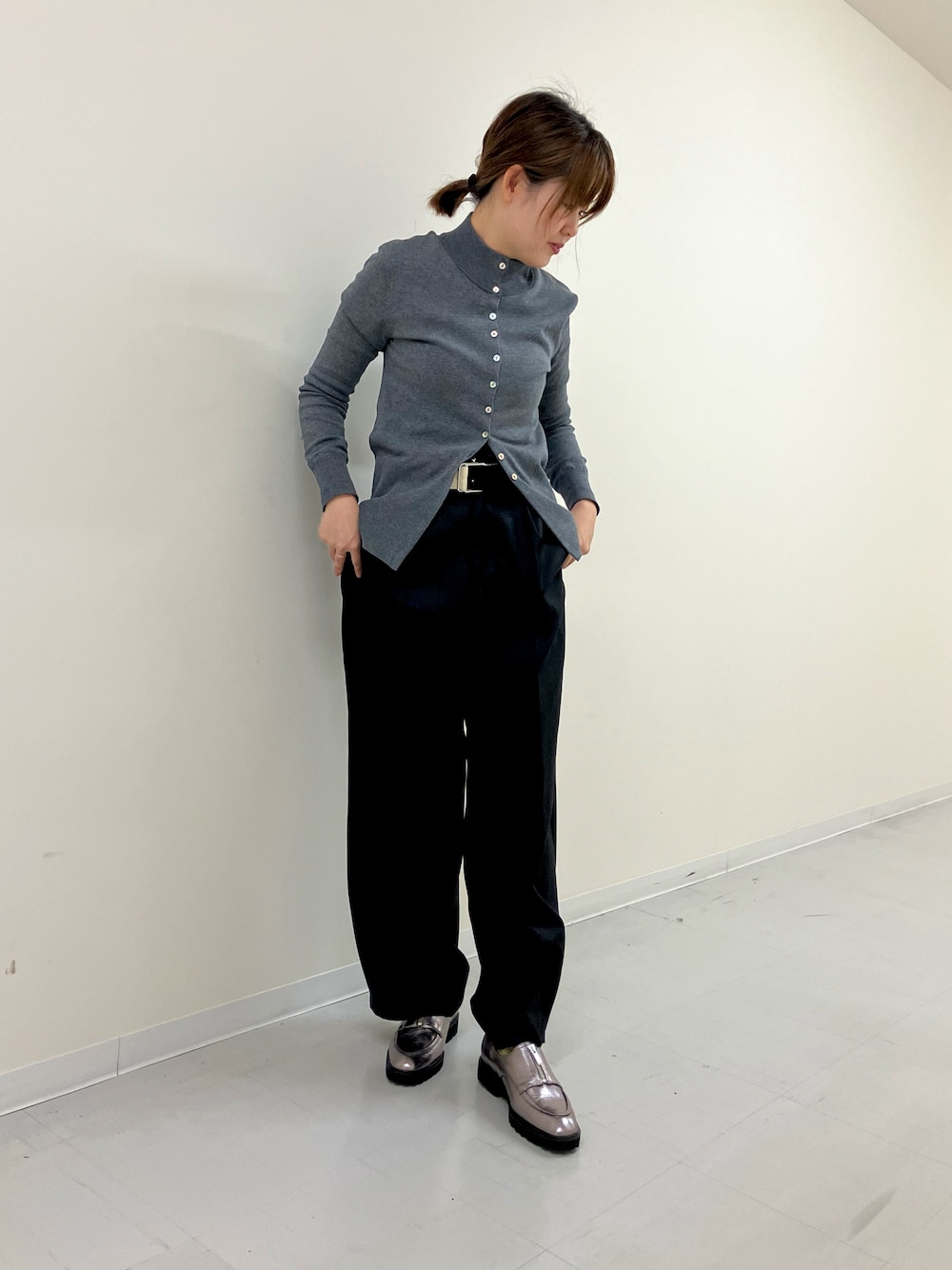 すっきりとしたスクエアトゥに センタージップデザインでモード感ある シューズをご紹介🍂 トラックソールで足元にボリュームを持たせ、トレンドスタイルを楽しみつつも ドレス感もある技ありの一足👞 箔メタリックのガンメタは暗くなりがちな 秋冬のスタイリングのアクセントに おすすめです♪ 京都高島屋店 スタッフ:UC