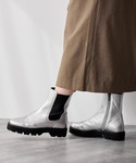 ご覧いただきありがとうございます💓 デニムのワイドパンツに紺ブレを合わせて キレイめカジュアルコーデです✨ ブーツはつま先がすっきりしたシルエットなので ワイドパンツ合わせでもすっきりした印象に☺️ つま先のメダリオンデザインがアクセント💫 【品番】641408 【カラー】ブラック・グレー・シルバー 【サイズ】21.5cm〜26.5cm 【ヒール高】4cm
