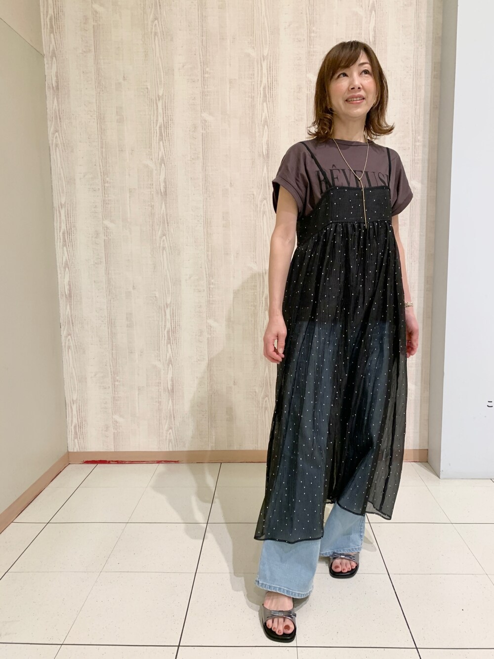 HIMIKO熊本鶴屋(卑弥呼 Online Shop)のTシャツ/カットソー「ローズペトール 半袖 プリント TEE」を使ったコーディネート
