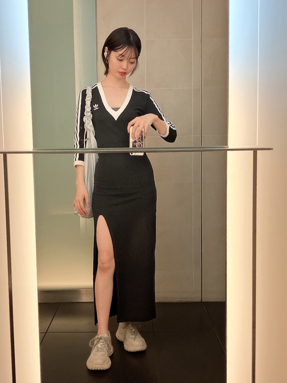 シルエットが好きすぎるadidasのワンピース 着てると絶対褒められるアイテムなのにめっちゃラクだからマジでおすすめ❤️🔥