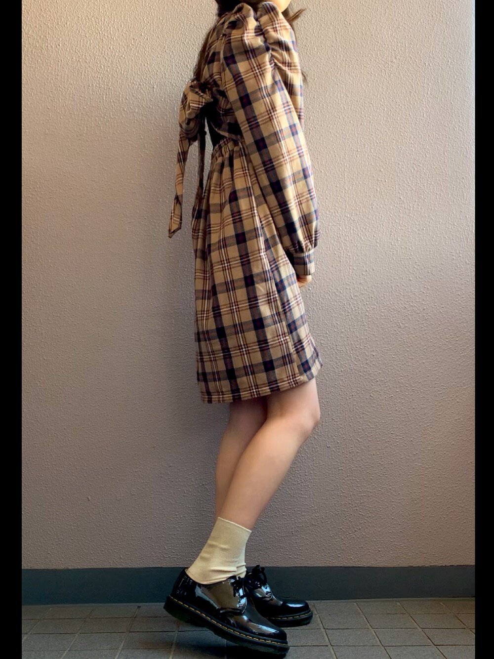 himmelのワンピース「バックリボンパワショルチェックワンピース」を使ったコーディネート