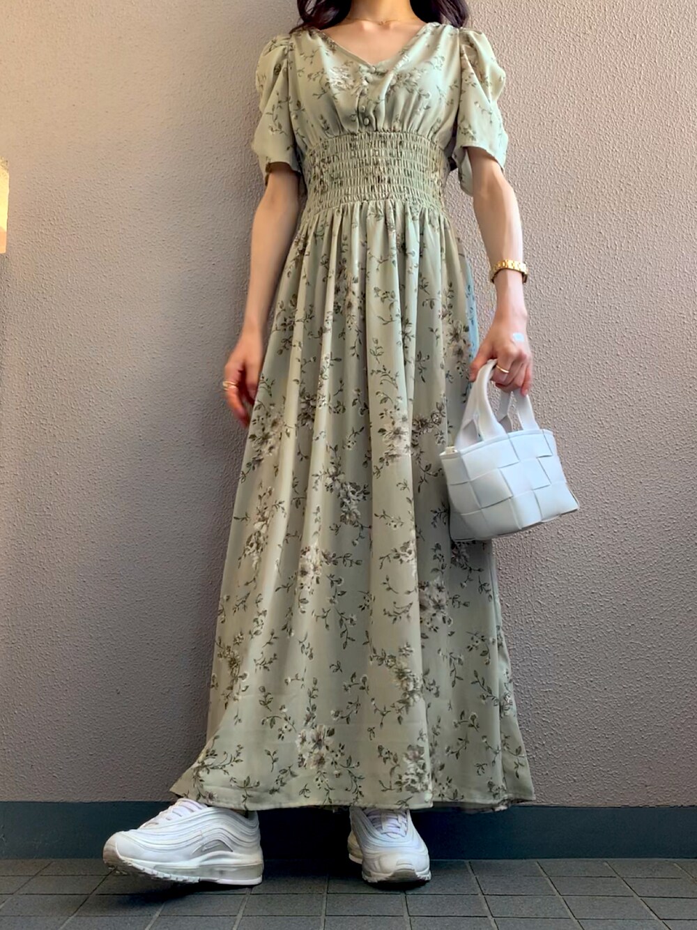 himmelのワンピース「花柄シャーリングワンピース」を使ったコーディネート