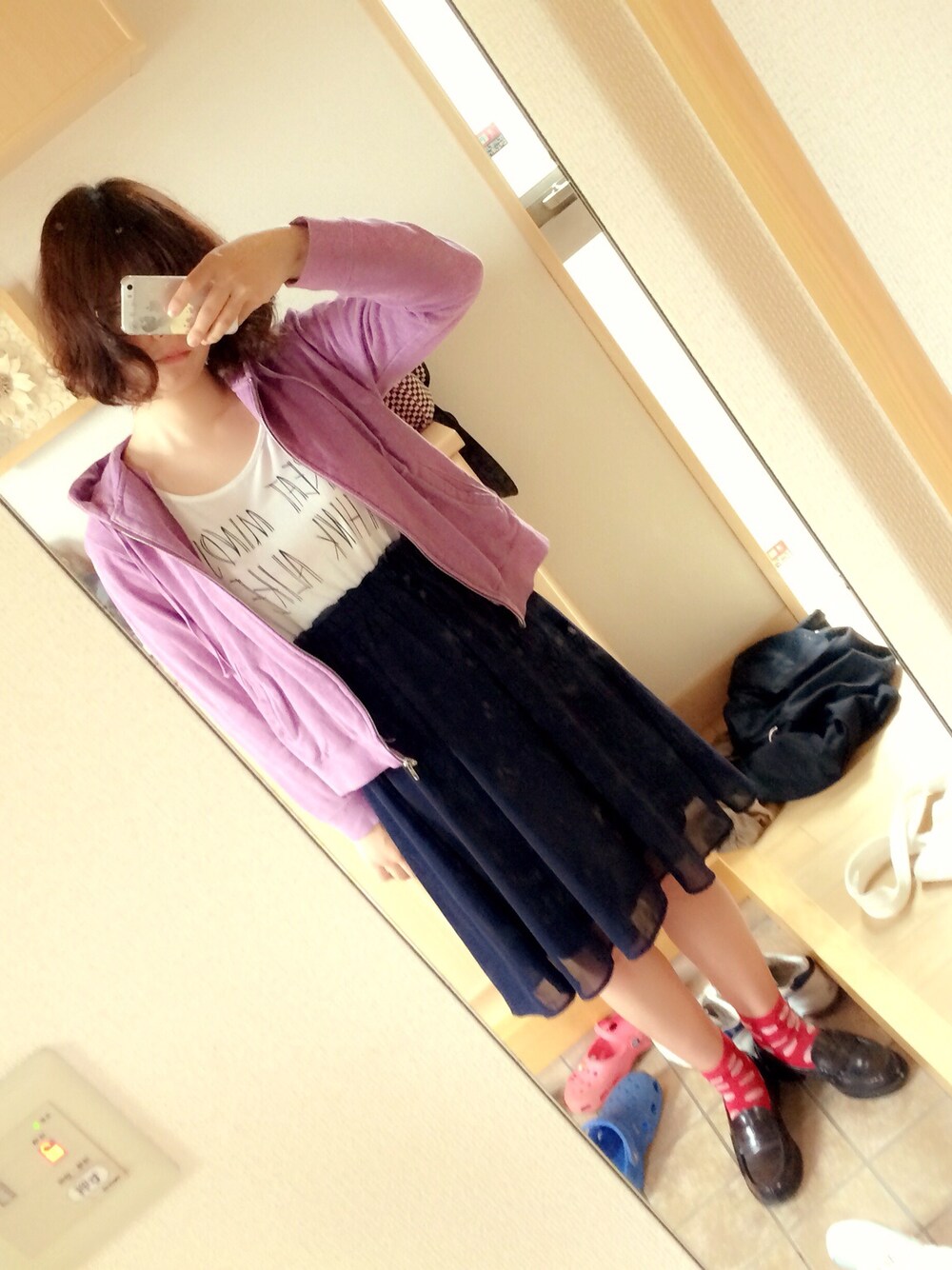 去年買ったGUのワンピ パーカーはどこだかわすれた ローファーは高校時代のを使用 休日楽チンコーデ⭐️