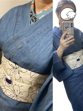「KYOETSU(キョウエツ)のアイテム(着物、ブルー系)」を使った、早智🍀💫🌈さん(レディース・166cm)の春コーディネート