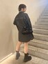 リアバイコーデ🖤 ゆったりシルエットなのでショートパンツ合わせで ワンピース風に着たい♡ 低身長さんはワンピ風に着るのが1番スタイルアップして見えて可愛いですよ〜!!