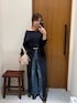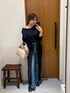 可愛すぎて即買いのスリットワンピ💙 パンツと一緒に着るだけで簡単にオシャレに見え🥹✨なかなか無いハイスリットデザインで脚長効果抜群でした◎ オフショルダーにしなくても可愛いです! デニムは159センチでSサイズを着用しています!センタープレスが入っていて綺麗めに履けるデニムです! このベルトも大のお気に入り♩ ベルトループが無いパンツや、トップスの上からウエストマークできるので便利で重宝しています🤝🏻💡